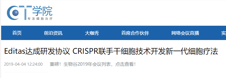 Editas達(dá)成研發(fā)協(xié)議 CRISPR聯(lián)手干細(xì)胞技術(shù)開(kāi)發(fā)新一代細(xì)胞…