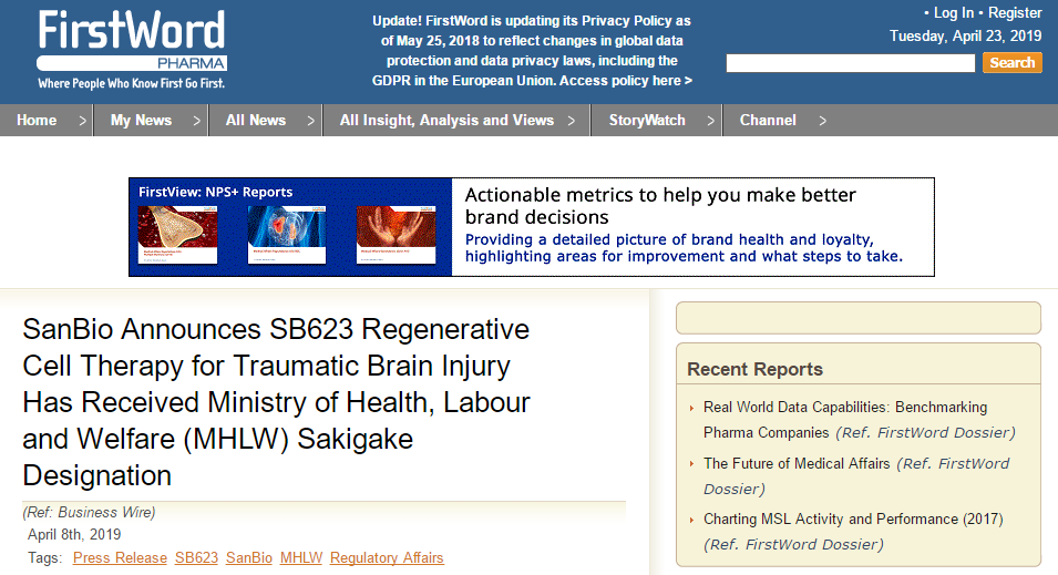 2019-04-28 查看更多日本再生醫(yī)療公司SanBio上周在美國(guó)神經(jīng)外科醫(yī)學(xué)學(xué)會(huì)上,發(fā)表利用異體成人骨髓間質(zhì)干細(xì)胞治療創(chuàng)傷性腦損傷的二期臨床試驗(yàn)數(shù)據(jù),…
