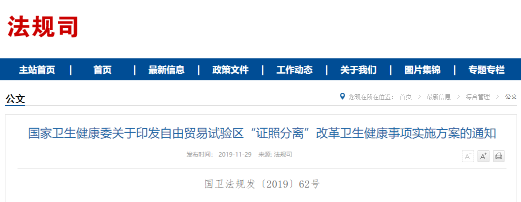 2019-12-19 查看更多近日,國(guó)家衛(wèi)健委發(fā)布《關(guān)于印發(fā)自由貿(mào)易試驗(yàn)區(qū)“證照分離”改革衛(wèi)生健康事項(xiàng)實(shí)施方案的通知》(以下簡(jiǎn)稱《通知》),公布12個(gè)醫(yī)改實(shí)施方案。此次衛(wèi)生健康領(lǐng)域的“證照分離”是要貫徹落實(shí)《國(guó)務(wù)院關(guān)于在自由貿(mào)易試驗(yàn)區(qū)開(kāi)展“證照分離”改革全覆蓋試點(diǎn)的通知》…