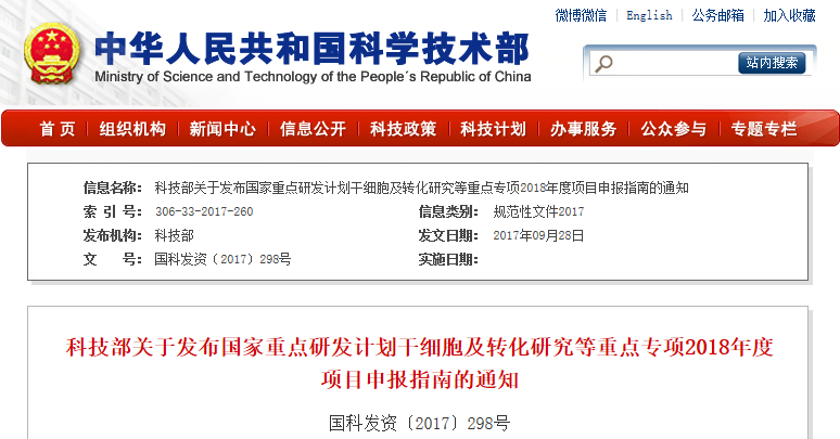 科技部發(fā)布了關(guān)于發(fā)布國(guó)家重點(diǎn)研發(fā)計(jì)劃干細(xì)胞及轉(zhuǎn)化研究等重點(diǎn)?!?/strong>